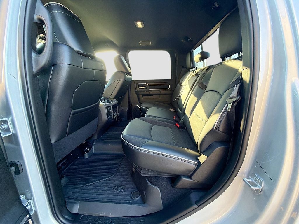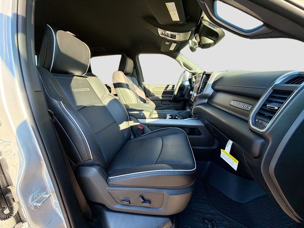 The exterior of the 2026 Ram 3500 Laramie exudes a commanding presence, with its striking Silver Zynith color and bold, chrome-accented design elements. The dual rear wheels and MOPAR Spray-in Bedliner add both style and functionality, ensuring your cargo remains secure and protected.