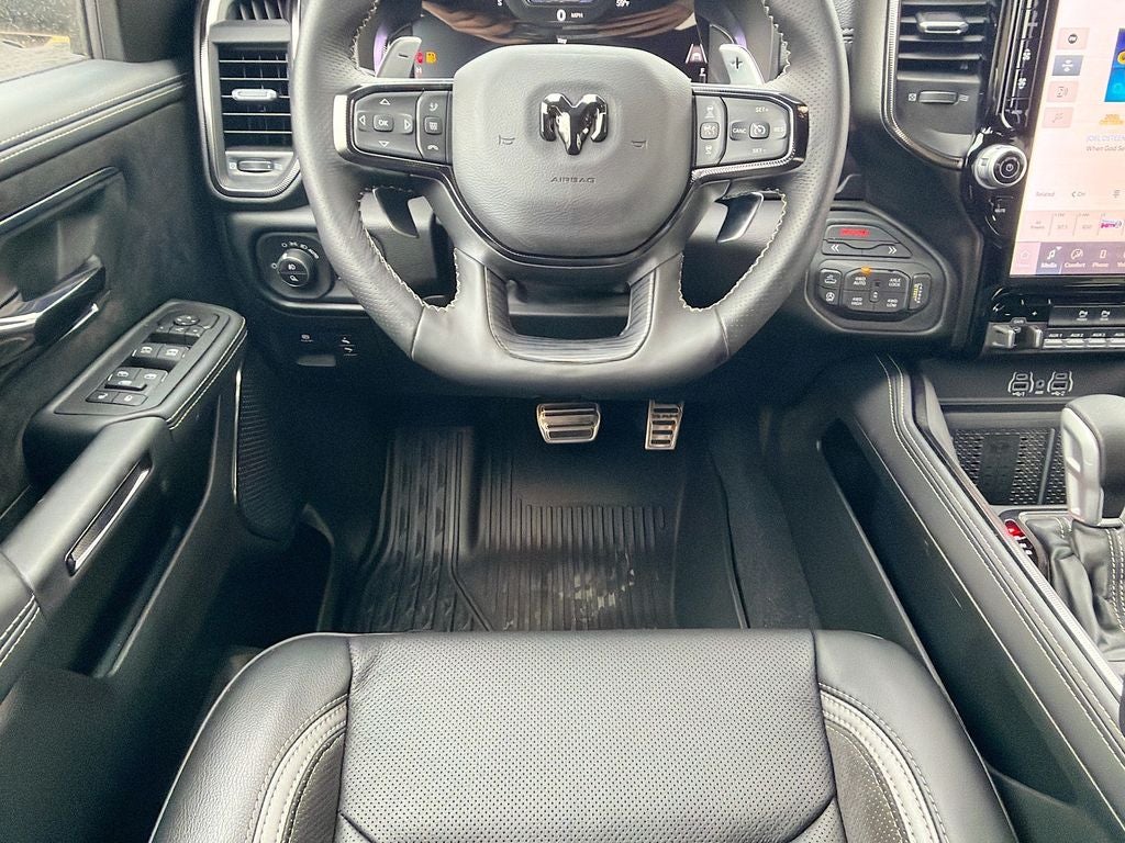 Indulge in the ultimate in comfort and convenience with dual-zone automatic climate control, heated front seats, a heated steering wheel, and power-adjustable seating. The spacious and versatile interior offers ample room for passengers and cargo, making this Ram 1500 the perfect companion for your adventures.