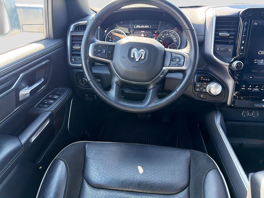Elevate your driving experience with the advanced safety and technology features, including Blind Spot & Cross Path Detection, Rain-Sensitive Windshield Wipers, and Auto High Beam Headlamp Control. The Laramie's premium leather-wrapped steering wheel, heated and ventilated front seats, and power-adjustable driver's seat with memory settings ensure unparalleled comfort and convenience.